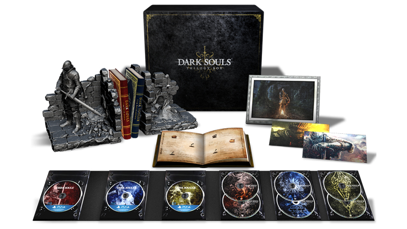 内容品:『DARK SOULS REMASTERED』、『DARK SOULS II SCHOLAR OF THE FIRST SIN』、『DARK SOULS Ⅲ THE FIRE FADES EDITION』、オリジナル・サウンドトラックCD(6枚)、アイテム辞典(3冊)、オリジナルブックエンド、メモリアルアートセット